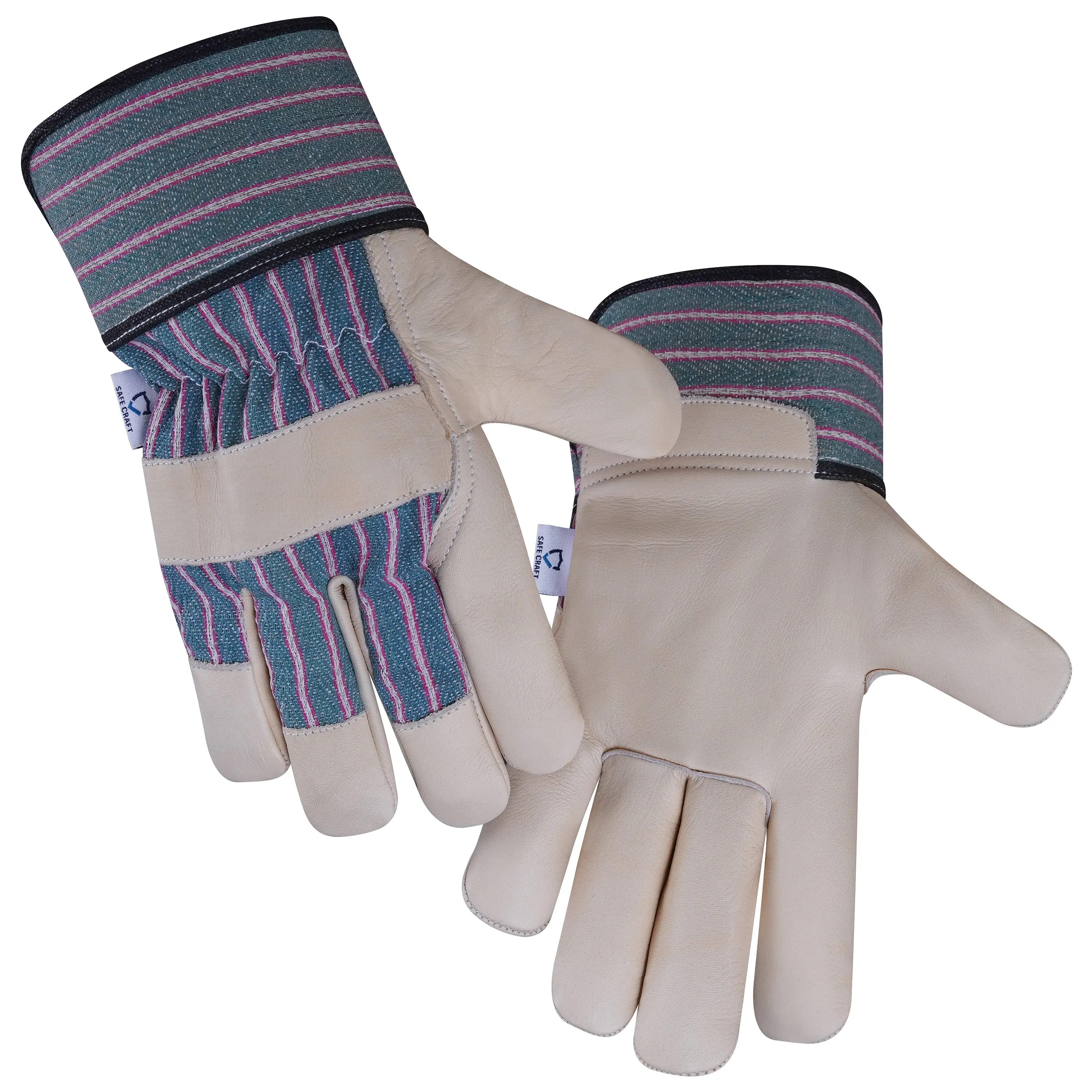 Material: Beige Cowhide Leather palm and fingers for durability and grip