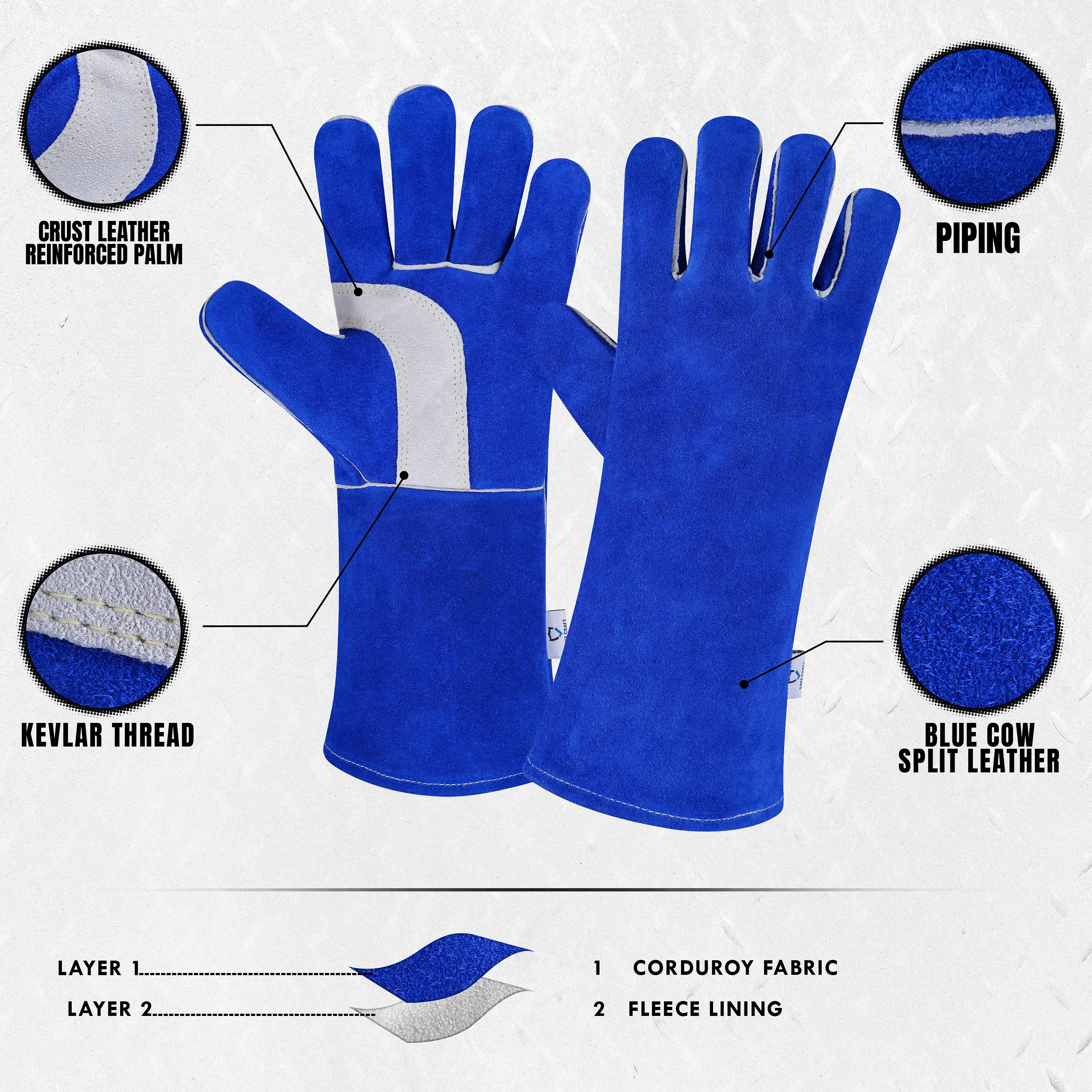 Reinforcement: Crust Leather reinforced palm and piping for improved abrasion resistance