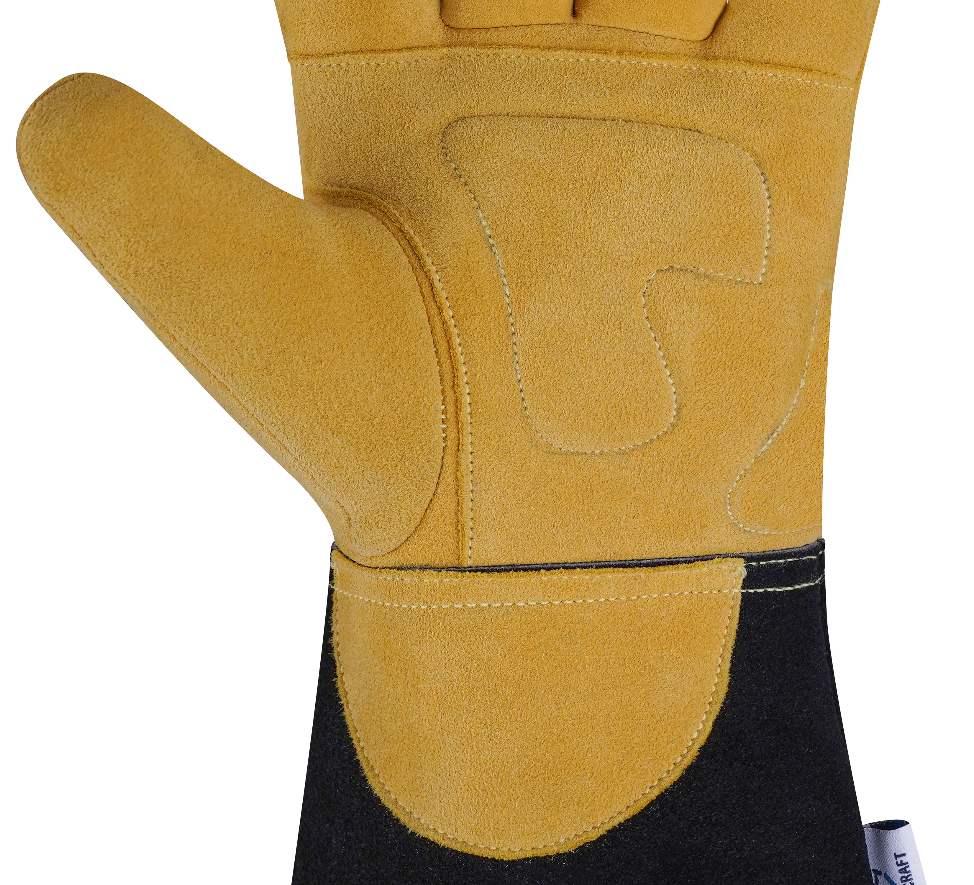 Cuff: Black Cow Split Leather for durability and extended wrist coverage