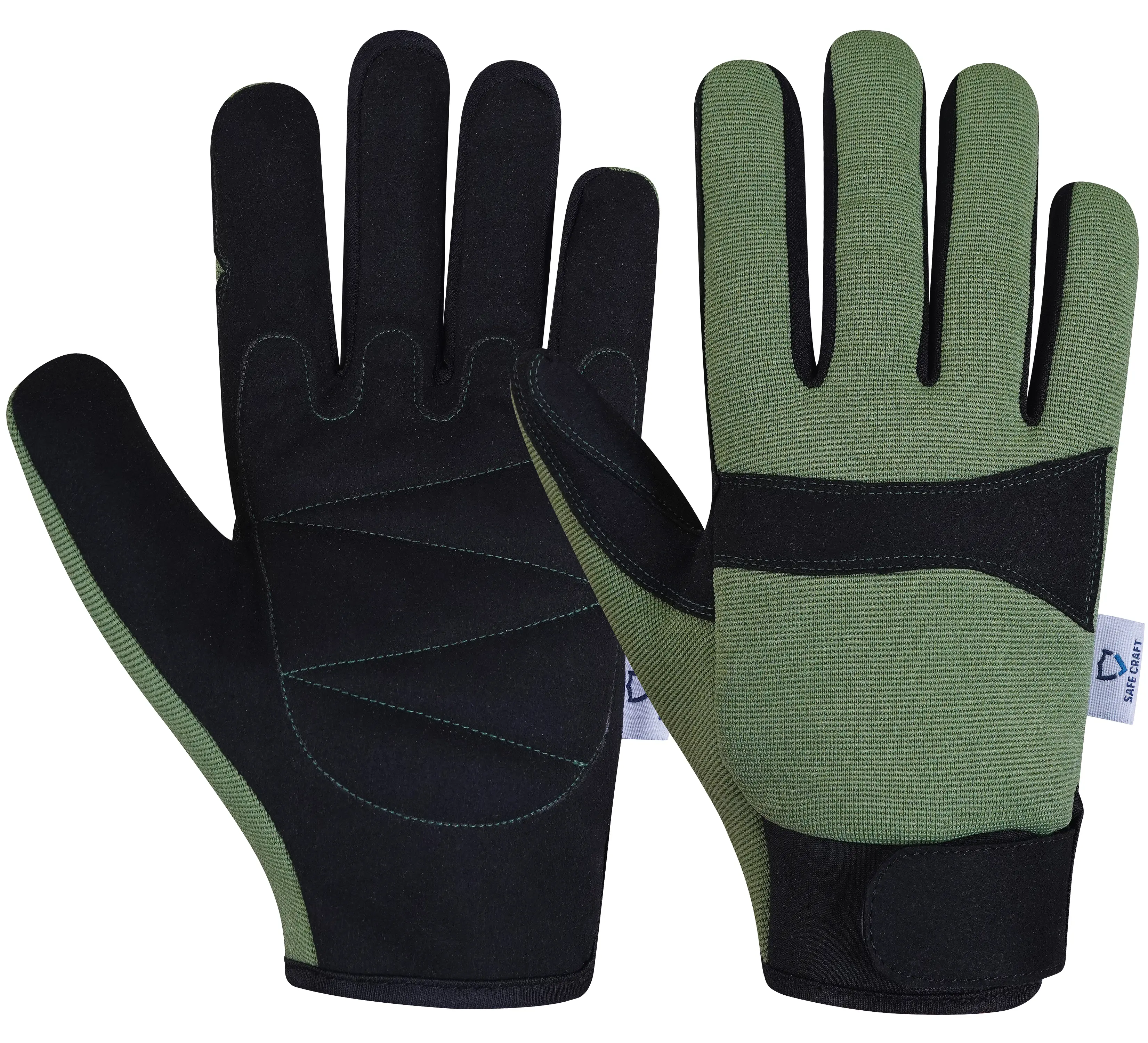 Built for comfort, protection, and dexterity, these gloves feature a Black Synthetic Leather palm with foam padding to provide enhanced grip, cushioning, and impact absorption. The Green Spandex back offers flexibility and breathability, while the Neoprene cuff with Velcro closure ensures a secure and adjustable fit. Ideal for mechanical, assembly, and industrial tasks, these gloves deliver reliable performance, comfort, and control in demanding work environments.