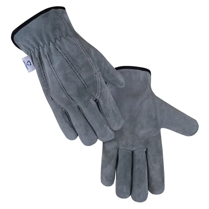 Built for tough performance and lasting comfort, these driver gloves are ideal for demanding work environments. Made from durable grey cow split leather, they provide strong protection, reliable grip, and exceptional wear resistance. The black polyester fleece lining ensures warmth and comfort, while the wing thumb design enhances flexibility. Finished with black polyester piping for a professional and sturdy look.