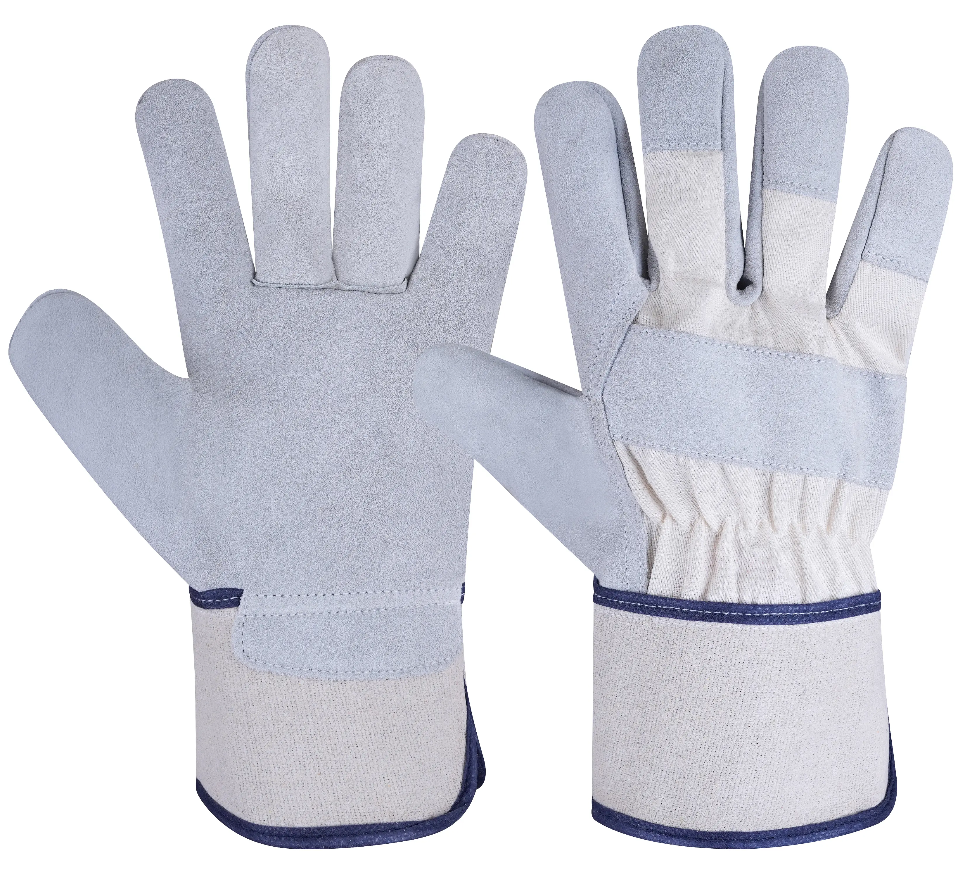 Crafted for durability, comfort, and reliable performance, these rigger gloves feature a Crust Cow Split Leather palm and back for strong abrasion resistance and flexibility. The half fleece lining provides warmth and comfort during extended wear, while the canvas cuff with blue piping ensures a secure fit and added durability. Perfect for mechanical, fabrication, and industrial tasks, these gloves offer dependable protection and all-day comfort in demanding work environments.