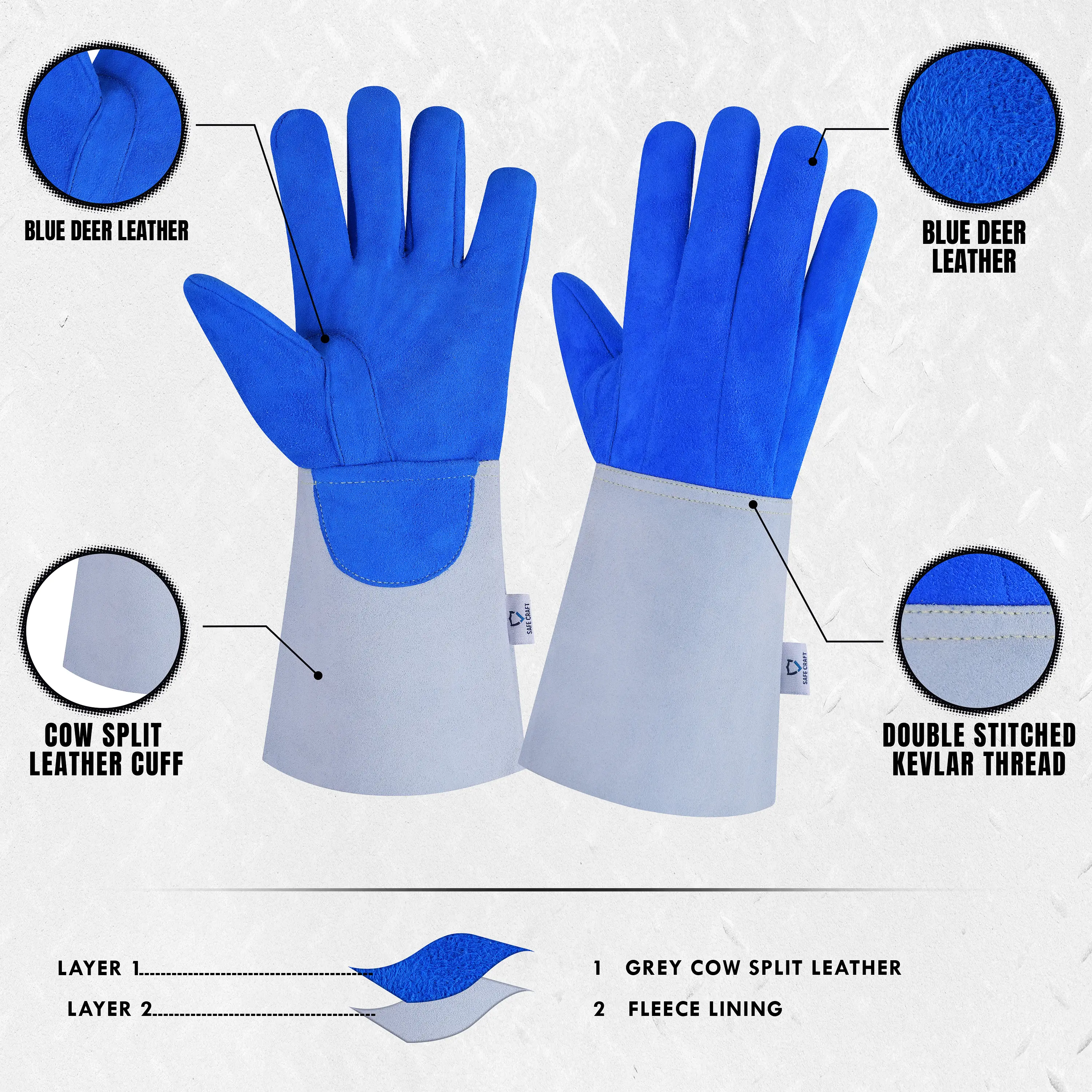 Material: Blue Deer Leather for superior softness, flexibility, and heat resistance
