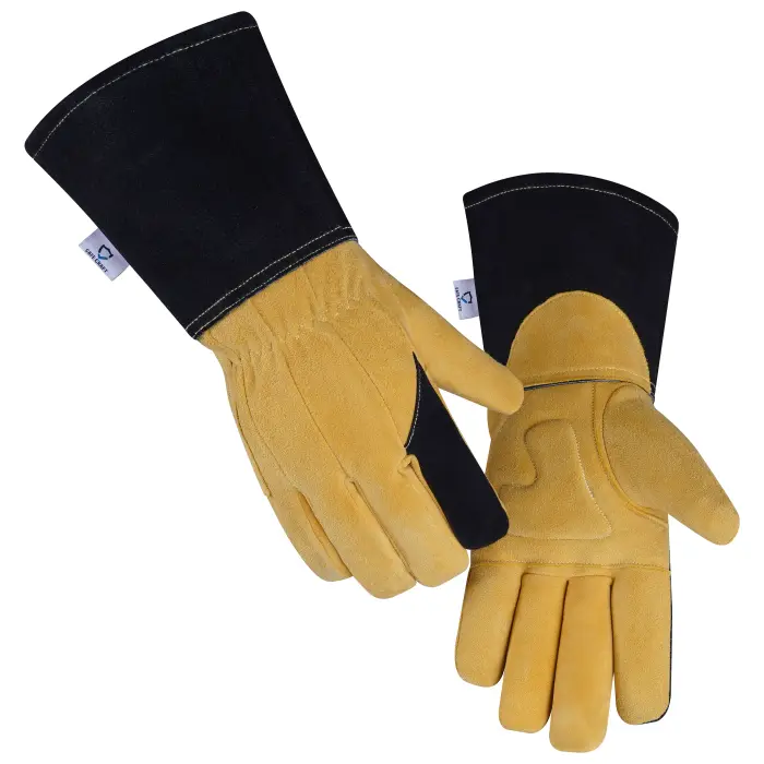 Material: Yellow Deer Skin Leather for flexibility, comfort, and heat protection