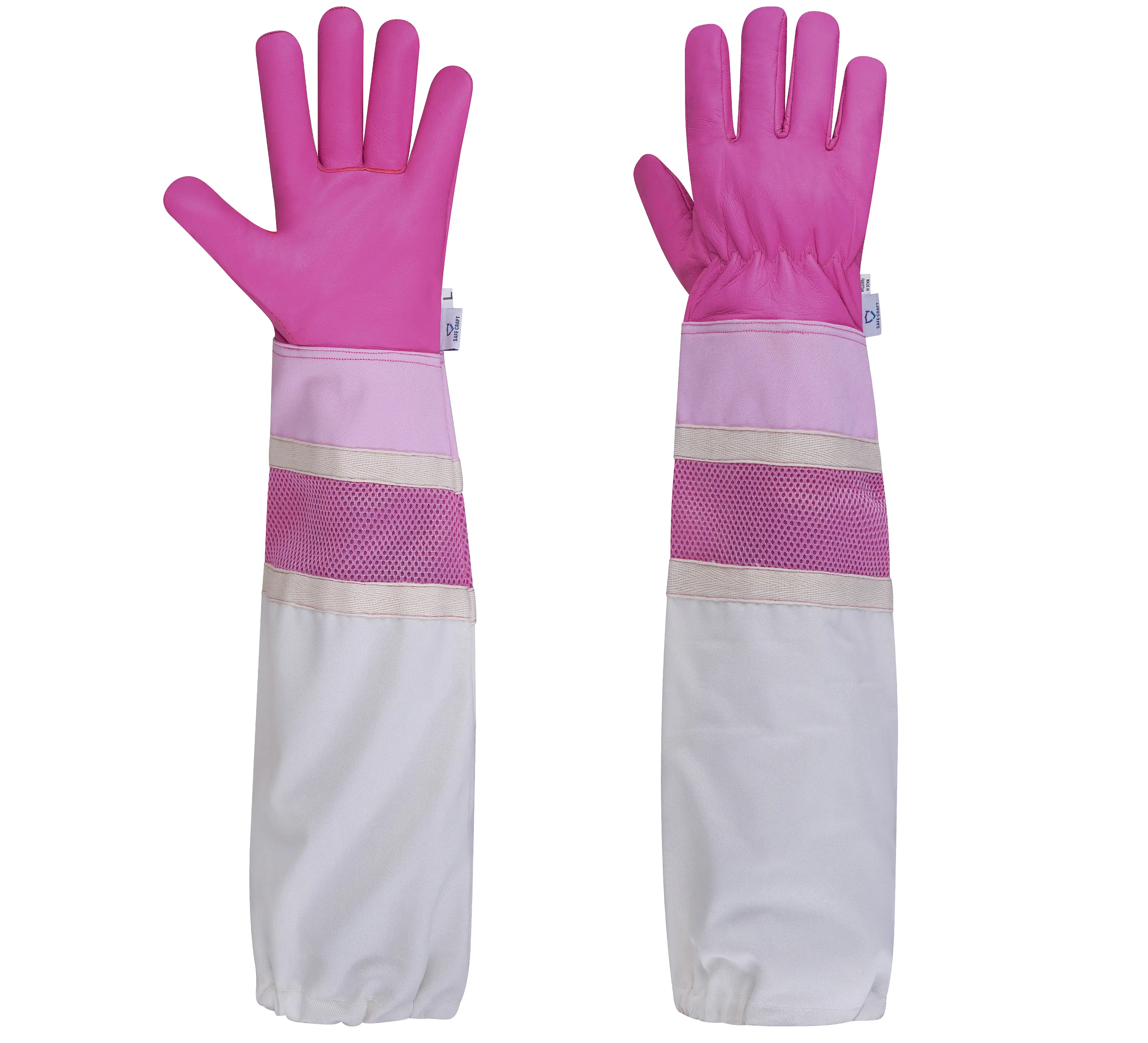 Specially designed for women beekeepers, these elegant Pink Sheep Skin Leather Gloves combine style, comfort, and protection. The soft, supple leather offers exceptional flexibility and a gentle feel, while breathable mesh panels keep your hands cool during hive inspections. The extended cotton twill cuffs provide full coverage against bee stings, and elasticized closures ensure a secure, comfortable fit. With a straight thumb design for easy movement, these gloves deliver both performance and feminine appeal for confident beekeeping.